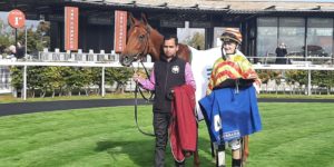 Jockey had a fall in earlier race but bounced back to win Group One.