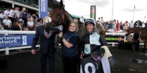 Rider back in the winner’s enclosure with Lezoo.