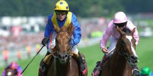 Colours famously sported by Lester Piggott in the winner’s enclosure again.
